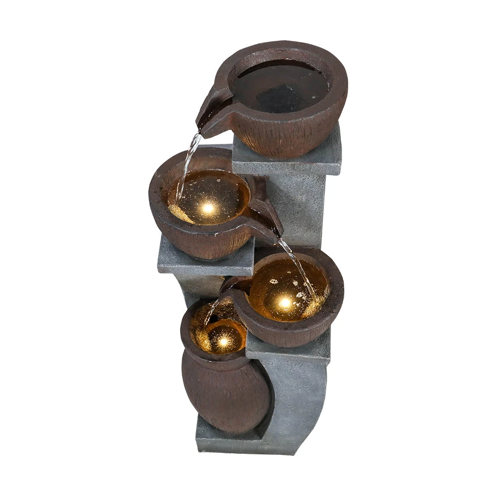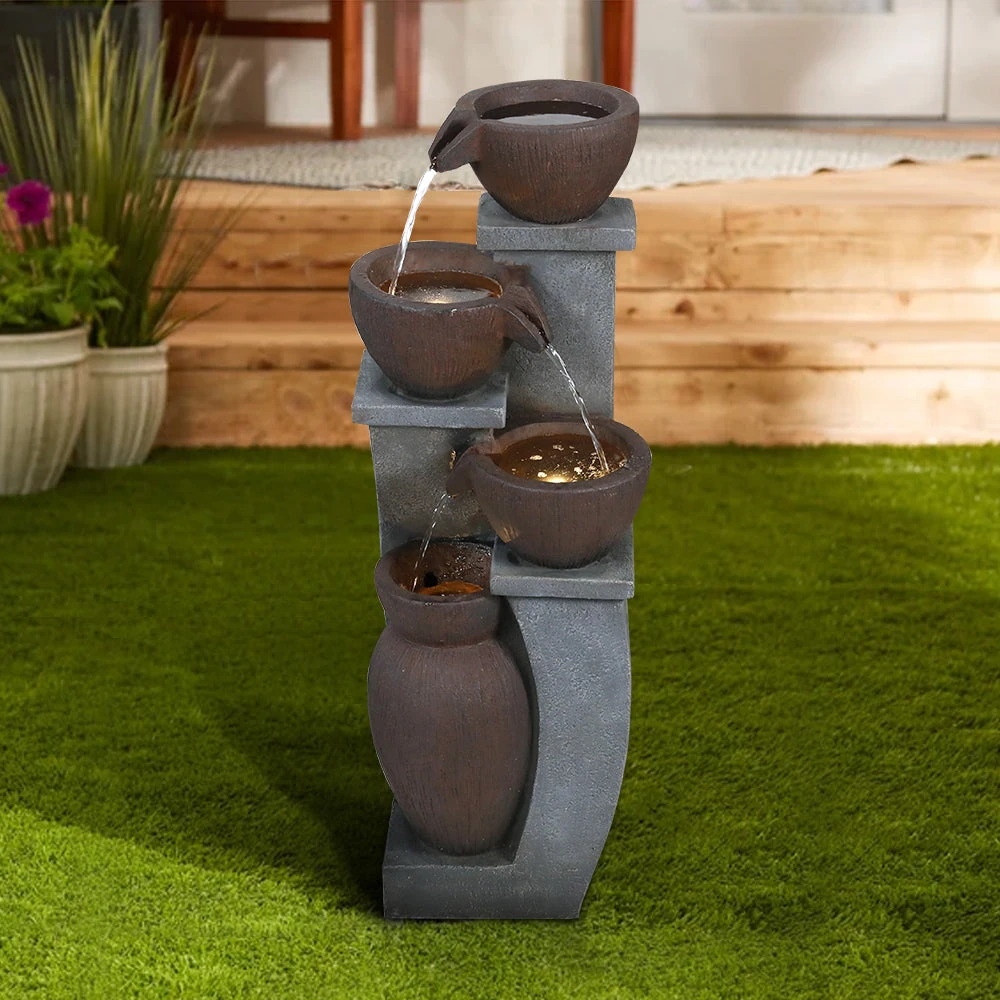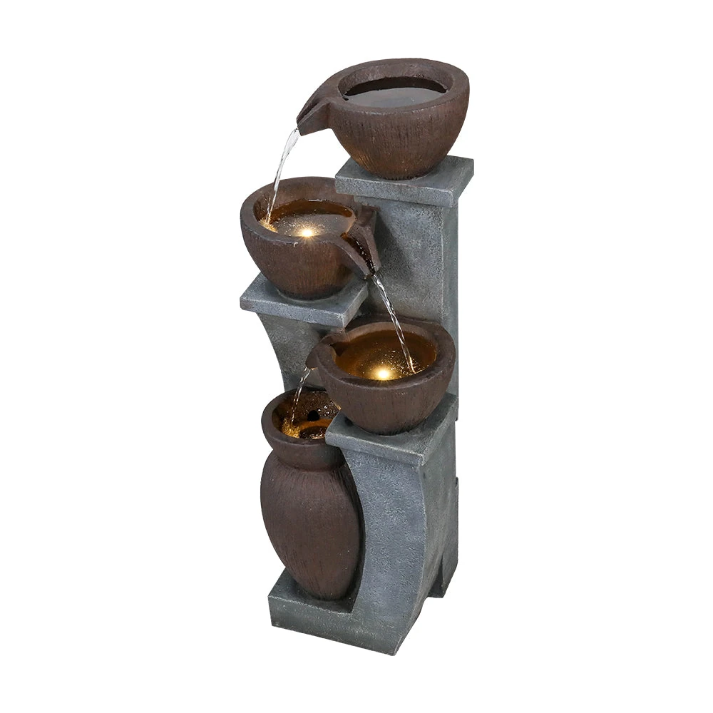 32.8″H Garden Tiered Outdoor Fountain with Warm LED Lights