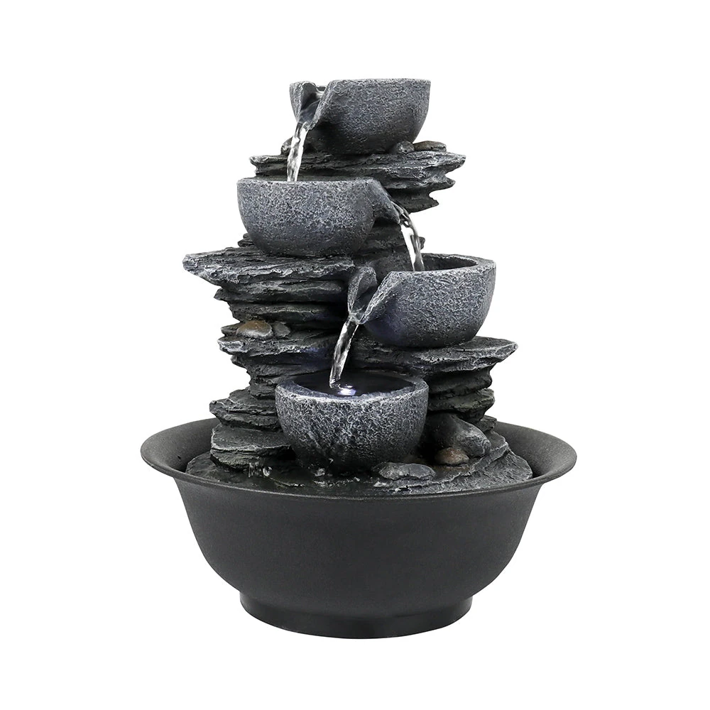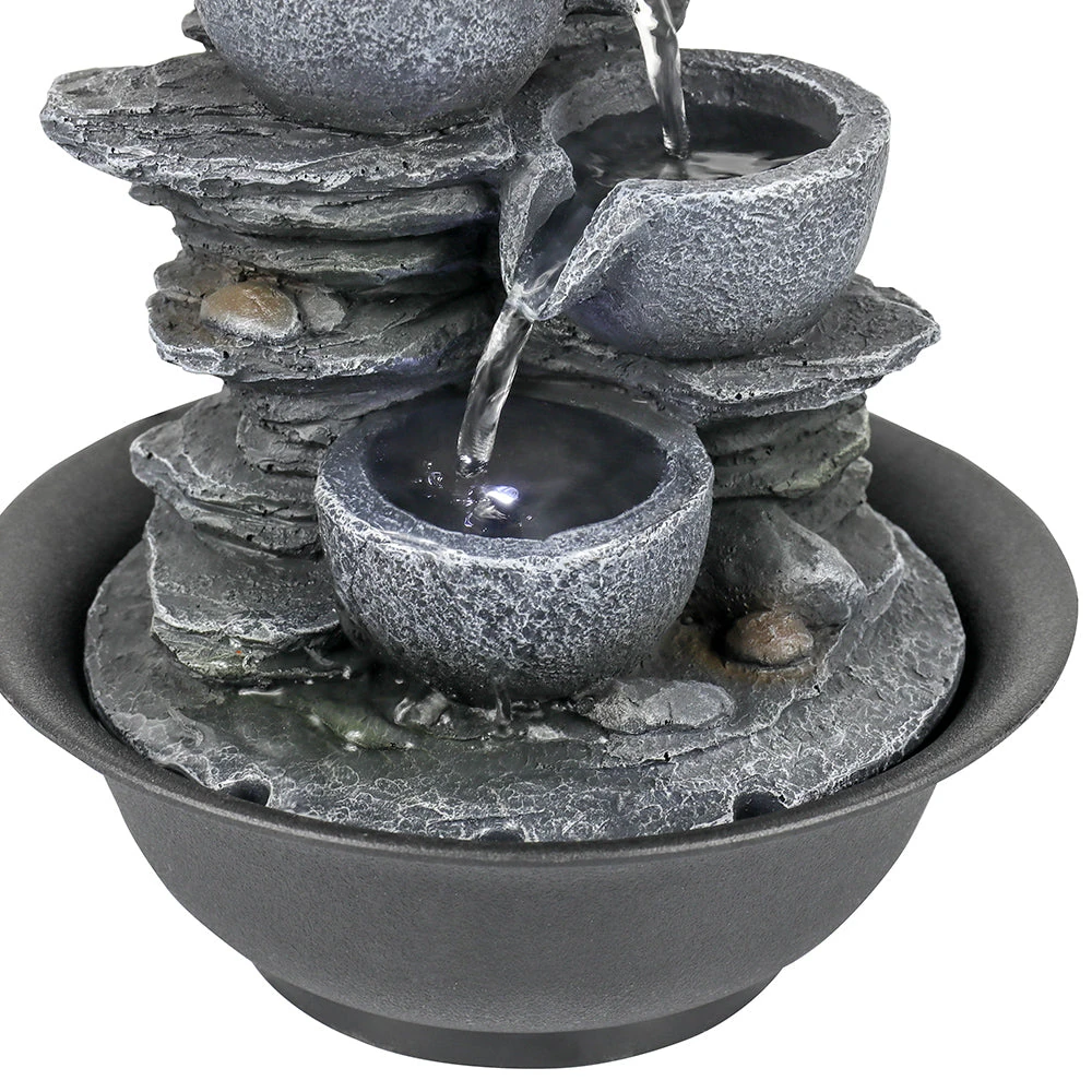 Indoor Tiered Cascading Bowl Fountain- Realistic Rock Design,Perfect for Any Indoor Space