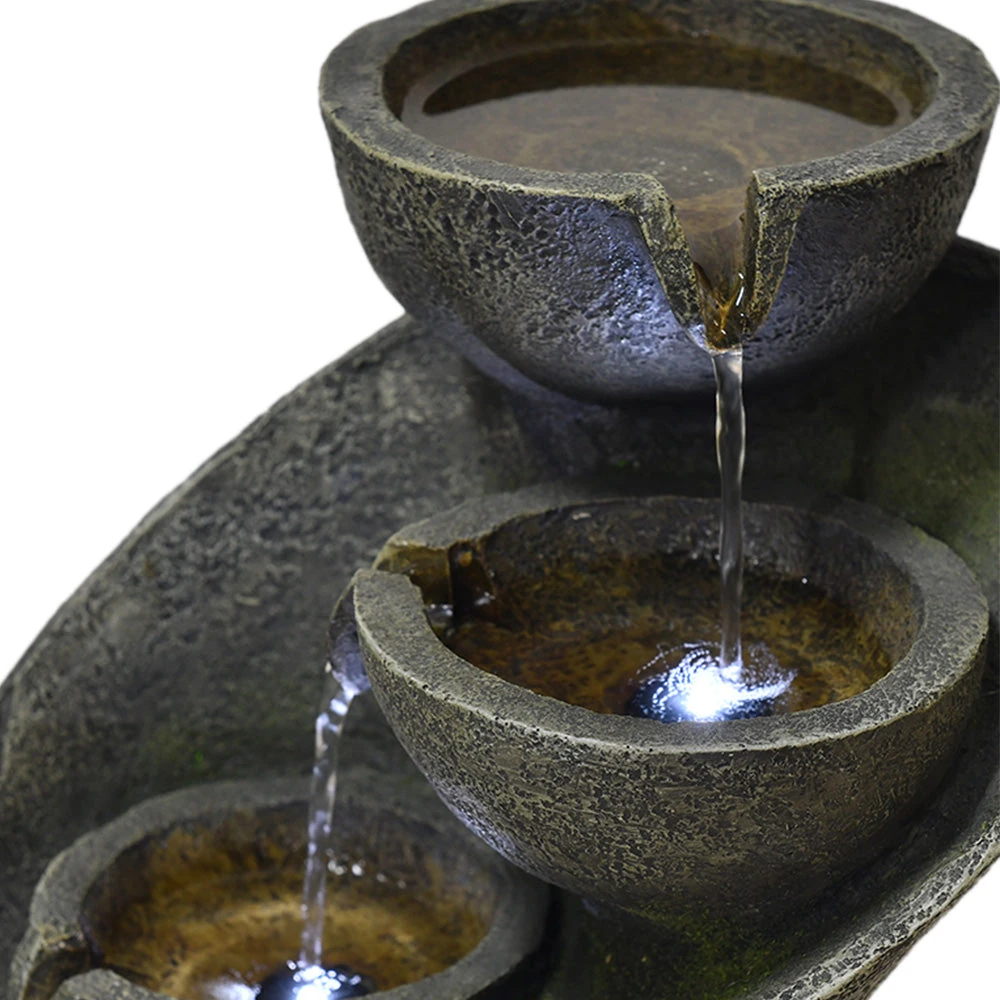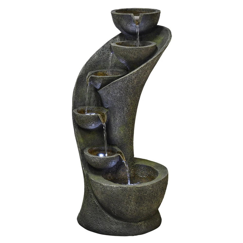 Outdoor 6-Tiered Bowl Fountain with LED Lights – Rustic Design for Garden, Patio, and Yard/23.6” H